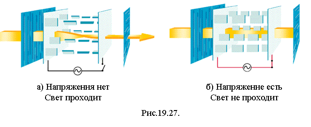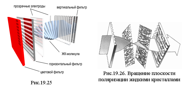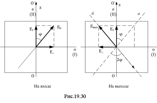 . В результате на выходе свет также линейно поляризован, но в другой плоскости, симметричной относительно оптической оси пластинки (рис.19.30).