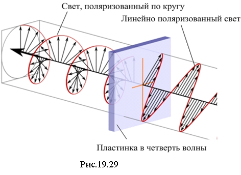 и поляризация будет круговой (рис.19.29). Такая пластинка называется пластинкой в четверть волны (