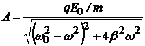 где r – смещение электрона из положения равновесия, β – коэффициент затухания, ω0 – собственная частота колебаний электрона,