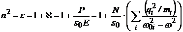 Здесь предполагается, что каждый атом (или молекулу) вещества можно рассматривать как систему нескольких гармонических осцилляторов – заряженных частиц с различными эффективными зарядами qi и массами mi, частоты собственных незатухающих колебаний которых равны