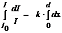 в (19.31) называется натуральным показателем поглощения (коэффициентом поглощения) среды. Он зависит от химической природы и состояния поглощающей среды и от длины волны света. Преобразуем и проинтегрируем это выражение: