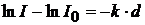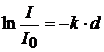 Здесь I0 и I – интенсивности излучения на входе и на выходе из слоя среды толщиной d. После преобразований получим: