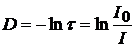 Оптическая плотность определяется натуральным (или десятичным) логарифмом пропускания: