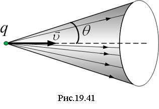 1) оно распространяется по образующим конуса с вершиной в точке, где находится частица (рис.19.41);