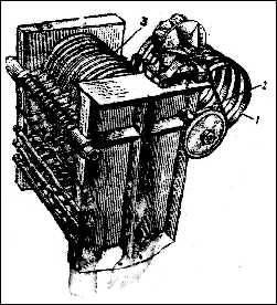 1. Медленно вращающийся металлический барабан с отверстиями. 2. Волнистая проволочная