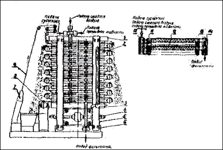 Рис. 21. Отстойник для суспензии с плоскими наклонными полками.