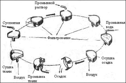 Рис. 41. Схема действия карусельного вакуум-фильтра.