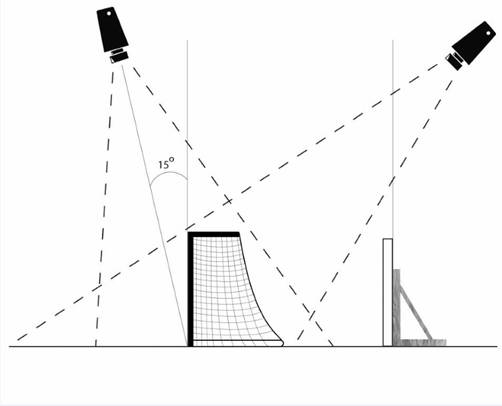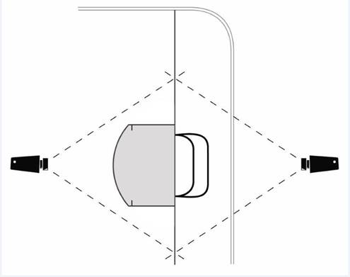 Схема расположения камер над воротами и за воротами (вид сверху)