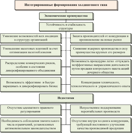 В исследованиях выявлены основные преимущества и недостатки интегрированных формирований холдингового типа, которые проявляются в процессе их развития (рис. 1).