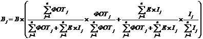 где Вj – часть выручки, распределяемой j-му участнику агрохолдинга на втором этапе распределения доходов (в рамках двухэтапной модели распределения доходов); В – выручка от реализации готовой продукции на рынке (за вычетом централизованных платежей); ФОТj – фонд заработной платы j-го участника (предприятия) агрохолдинга; Ij – величина инвестиционных вложений в j-го участника; Е – нормативный коэффициент эффективности 0,12 (согласно Типовой методике определения эффективности капитальных вложений);