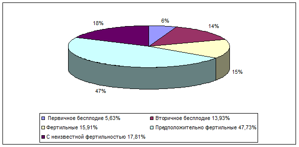 Таким образом, эпидемиологическое исследование позволило ответить на вопрос о частоте бесплодия в Иркутской области, значительно превышающей установленный ВОЗ «15%» рубеж, при котором бесплодный брак значительно влияет на демографические показатели, превышая суммарное воздействие невынашивания беременности и перинатальной патологии [, 2002]. Однако проведенное эпидемиологическое исследование не позволило ответить на вопрос о частоте и структуре эндокринных форм бесплодия, так как для этого требуется проведение комплекса диагностических мероприятий, установленных ВОЗ.