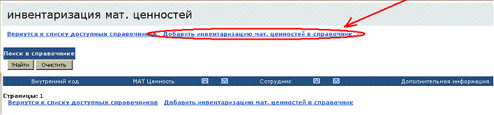 4. Шаг 4 - Заполняем справочник. Для того, чтобы начать привязывать свои мат. ценности к помещениям, нужно перейти по ссылке «Добавить инвентаризацию мат. ценностей в справочник» (см. рис.4)