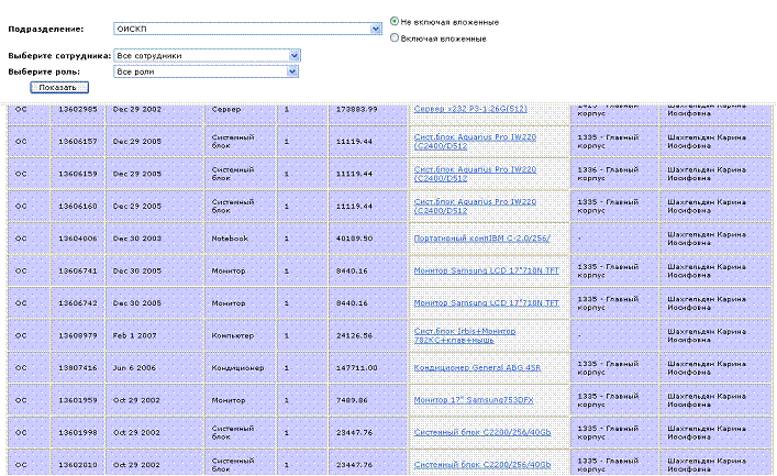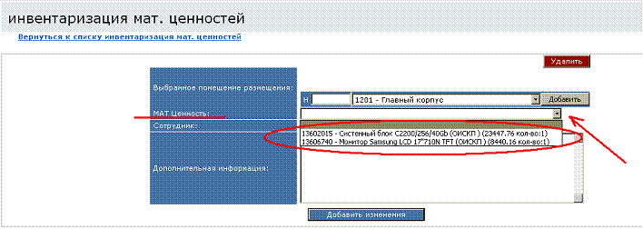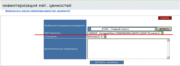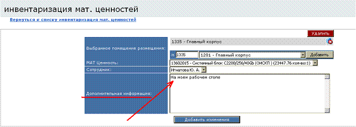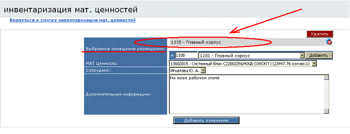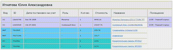 Цель: Привязать материальные ценности, которые числятся за сотрудниками ВГУЭС, к помещениям их фактического расположения.