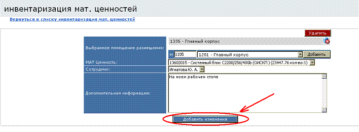 15. Шаг 15 – Сохранить данные. Для этого нужно нажать кнопку «Добавить изменеия», как показано на рис.15