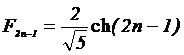 Нечетных и четных членов лестничной последовательности чисел (1) связаны с гиперболическими функциями и определяются по формулам, установленным [6]: