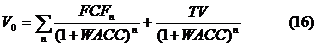 где WACC - средневзвешенная стоимость капитала предприятия, определяемая по формуле (3);