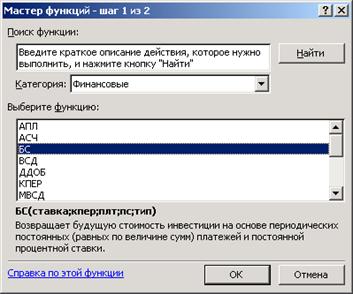 Мастер функций. Далее устанавливается категория Финансовые и в списке выбирается нужная функция, как показано на рисунке 3.3.