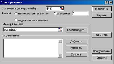 Теперь выберем команду Сервис, Поиск решения и заполним открывшееся диалоговое окно Поиск решения, как показано на рисунке 3.30.