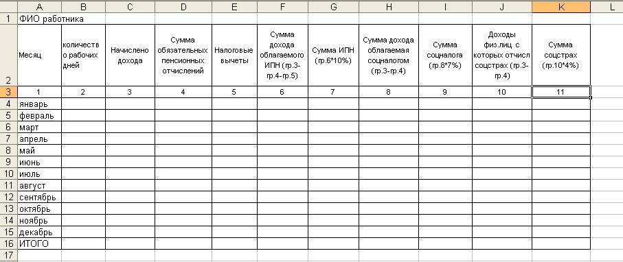 Ячейкам, выделенным серым цветом, рекомендуется присвоить имена типа «Месяц», «МРП», «МЗП», «ОбязПенсОтчисления» и т. д. Напоминаем, что присвоенные имена ячеек не должны содержать пробелов.