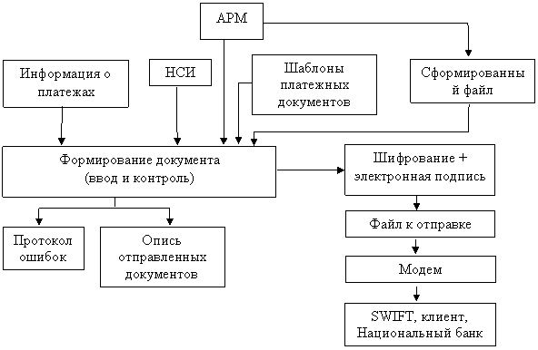 - АРМ оператора (может и не быть) – обеспечивает ввод документов, собранных в пачки, с прочитанной контрольной суммой. Обычно банк использует этот АРМ при больших объемах ввода;