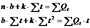 Зависимые переменные в уравнении определяются по методу наименьших квадратов из системы уравнений: