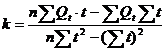 k, b – подлежащие определению зависимые переменные уравнения прямой;