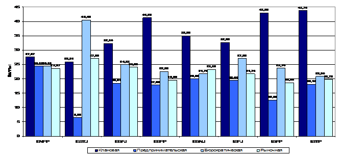 Клановая | Предпринимательская | Бюрократическая | Рыночная | ||
