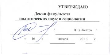 Рабочая программа составлена на основании требований Государственного образовательного стандарта ВПО по направлению 030201.65 «Политология».
