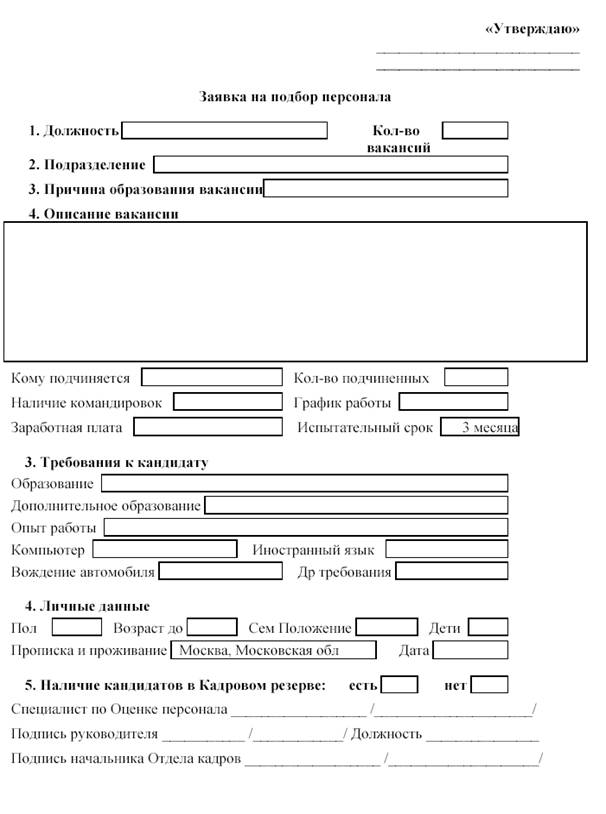 Рис. 2. Образец заявки на подбор персонала