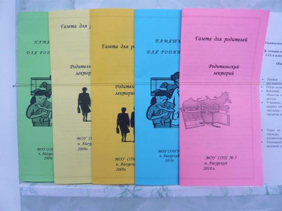 2. Психолого-педагогический лекторий (в том числе выпуск газеты «Родительский лекторий». Темы: «Воспитание подростка, допускающего отклонения от норм поведения», «Приёмы развития внимания, памяти, мышления», «Рекомендации родителям по воспитанию детей», «Кризис семи лет», «Единый государственный экзамен»).