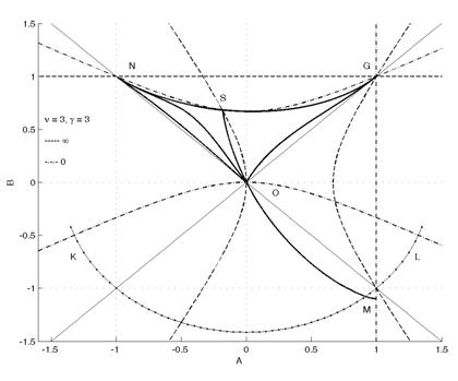 Исходному покоящемуся состоянию вещества соответствует точка N. Интерес представляют интегральные кривые, исходящие из точки N, вдоль которых
