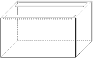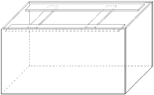 С рёбрами жёсткости особых проблем обычно не возникает. Всё так же, как и при склейке более мелких аквариумов. А вот поперечных стяжек можете нагородить столько, сколько Вам покажется необходимым. Главное - поставьте одну стяжку посередине. Она самая главная, т. к. удерживает рёбра от выгибания в самом напряжённом месте. Для того, чтобы Вы имели какое-то понятие о том, что же это такое, на рисунке показан аквариум с двумя стяжками: