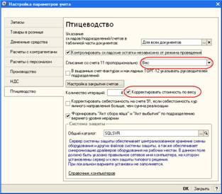 Установим способ расчета суммы списания птицы в «Настройках параметров учета» (рис. 1):