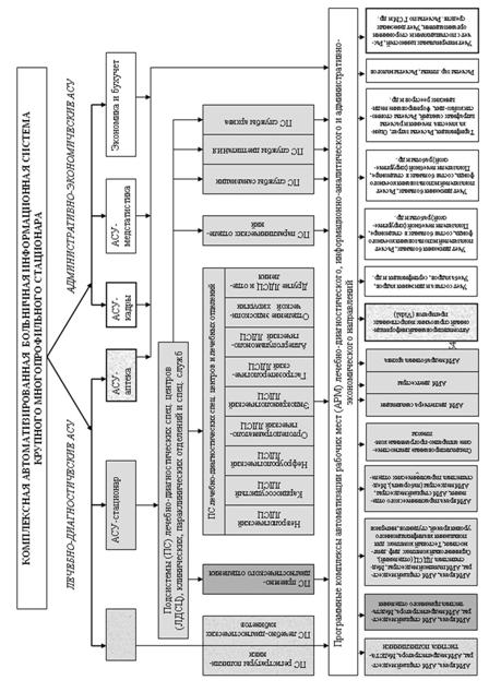 Познакомьтесь со структурной схемой программного комплекса автоматизированной больничной информационной системы (АБИС) крупного многопрофильного стационара.
