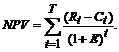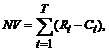 где Т – продолжительность жизненного цикла ИП; t – порядковый индекс периода фиксации денежного потока; R – приток денежных средств; С – отток денежных средств; (R – C) – сальдо денежного потока за период t.