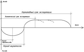 В данном подразделе ДП необходимо построить график жизненного цикла объекта проектирования (рис. 9.1) и рассмотреть период долговременной эксплуатации.