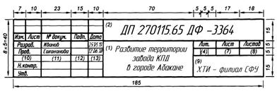 1 – наименование документа, тема проекта; 2 – децимальный номер, состоящий из обозначений: ДП – дипломный проект, номер специальности, ДФ – дневной факультет, номер зачетной книжки; 9 – наименование вуза, группа.