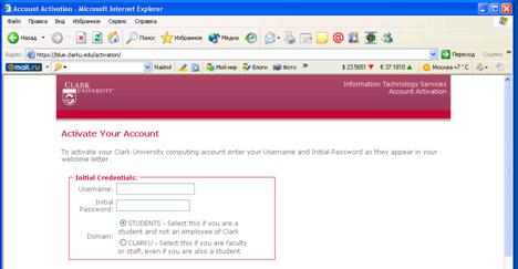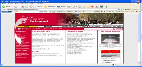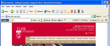 Перейдите по ссылке http://www. clarku. edu/ (в верхней строке необходимо перейти на Intranet, см. рис. 3).