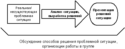 Под ситуацией (кейсом) понимается письменное описание какой-либо конкретной реальной ситуации, например, история образования, организационное становление организации, ее развитие, результаты в бизнесе. Обучающихся просят проанализировать ситуацию, разобраться в сути проблем, предложить возможные решения и выбрать лучшее из них. Кейс-метод предполагает групповую работу над кейсом слушателей под руководством преподавателя. С содержанием кейса, как правило, каждый знакомится предварительно. Преподаватель строит занятия так, чтобы заставить слушателя анализировать и синтезировать полученные из кейса данные, различные точки зрения слушателей, принимающих участие в дискуссии, определять и выстраивать цели по приоритетам, аргументировать и убеждать тех, кто думает иначе. Цель кейс-метода заключается не в том, чтобы просто передать знания студентам, а в том, чтобы выработать у них навыки лидерства и взаимодействия.