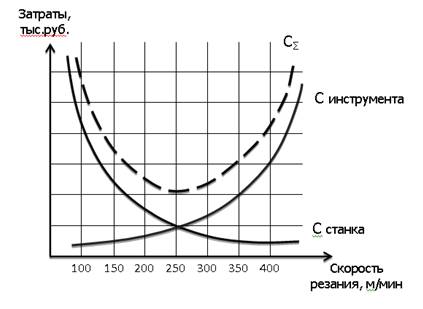 Рис. 1. График зависимости затрат на обработку от скорости резания.
