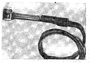 Этот инструмент отличается от описанных выше тем, что подача кислорода в зону дуги осуществляется только в момент горения дуги и прекращается при ее потухании. Зажим электрода и подвод его к кислородной камере держателя достигается одновременно путем поворота одной рукоятки на 90°.