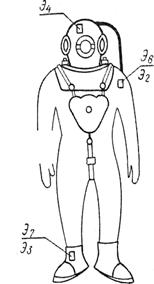 Рис. 64. Расположение датчиков на теле водолаза и на различных частях водолазного снаряжения.