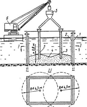 Рис. 67. Схема подводного бетонирования оголовков водозабора по способу восходящего раствора (ВР):