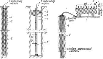 Восстановление водонепроницаемости асфальтовых, вертикальных и контурных шпонок осуществляется с помощью U-образных или трубчатых электронагревателей, устанавливаемых в шве при строительстве или ремонте гидросооружения (рис.114).
