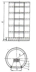 1-створный столб ворот; 2-шпангоуты; 3-обшивка; 4-брус уплотнения.