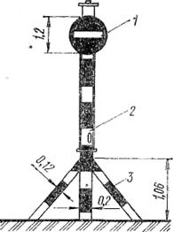 Рис. 117. Створный знак: 1-щит; 2 — стойка; 3 — подкосы
