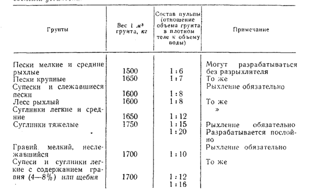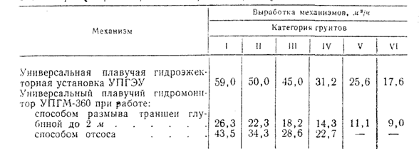 Нормы выработки гидромониторных установок в разных грунтах приведены в табл. 17 (без транспортировки пульпы).