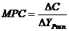 С изменением дохода доли потребления и сбережений меняются. С экономической точки зрения важно знать величину их изменений (предельную величину) в ответ на изменения в доходе. Изменение величины потребления вследствие изменения в доходе называется предельной склонностью к потреблению (МРС):