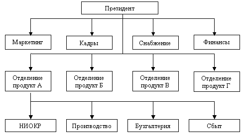 Чтобы справиться с проблемами, обусловленными размерами фирмы, диверсификацией, изменениями технологии и внешней среды, многие руководители крупных компаний перешли на децентрализованные дивизиональные структуры управления – продуктовые и региональные.
