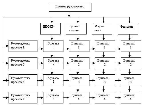 Некоторые проблемы механистических структур могут быть решены при введении органических или адаптивных структур. Основные типы – это матричная, проектная и сетевые структуры. В матричной и проектной организациях происходит наложение специально созданных, временных целевых структур на постоянную структуру организации. Происходящее при этом наложение полномочий иной раз приводит к борьбе за власть, конформизму при выработке групповых решений и чрезмерным затратам.